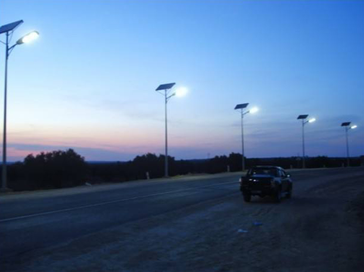 Hitechled split solar powered LED street lights has separated Mono Crystalline solar panel and light head.
